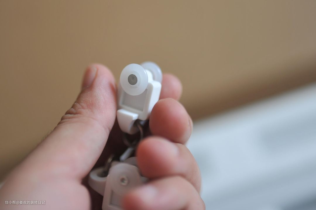 完成后就可以挂上窗帘。窗帘一侧要装在轨道的规定卡孔里,另外一侧要装在滑车上,否则窗帘是没法正常开启关闭。