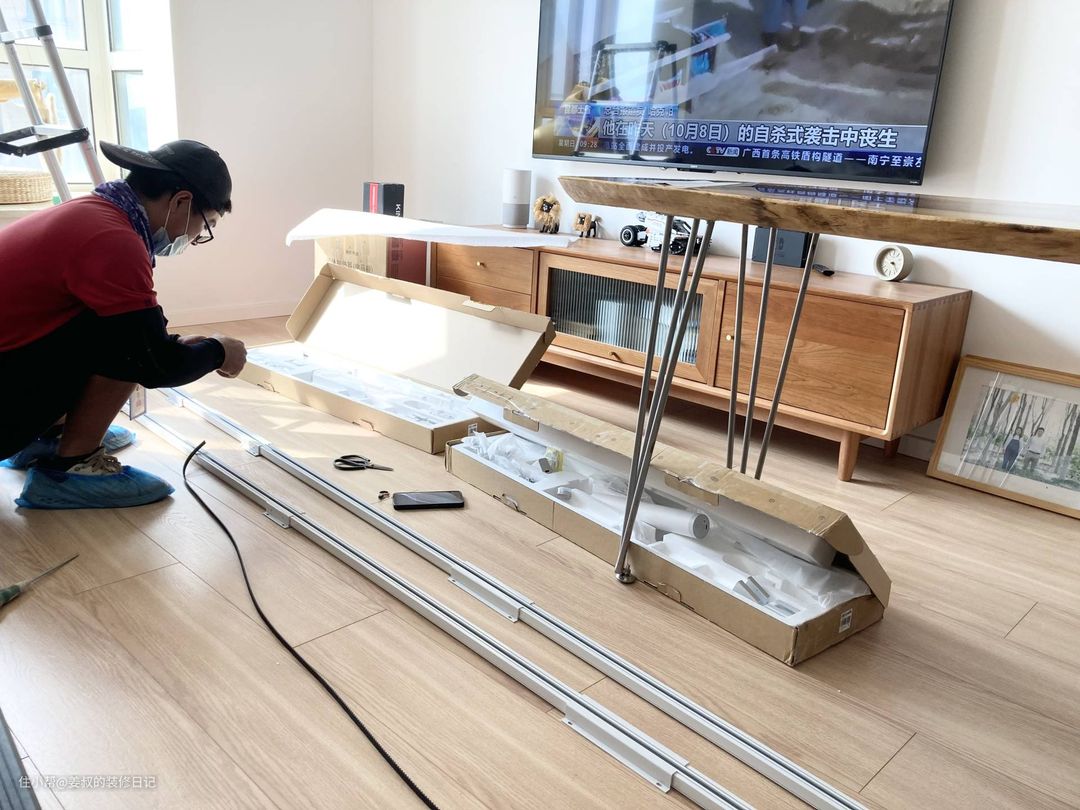 购买电动窗帘时一定要看好价格是否包含安装费用,单独安装窗帘价格还是挺贵的,如果自己动手能力强,也可以自己安装。我购买的米家智能窗帘包含安装,所以不用自己动手,另外选择带安装服务的的原因是,第一次用电动窗帘,不了解怎么安装配件,实际上安装配件还是有一定难度的,除非有一定安装经验,否则还是让专业人士来安装吧。