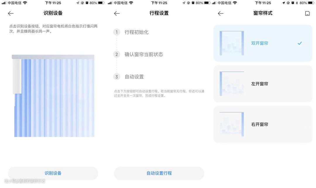 虽然智能窗帘可以用APP控制,但是我最喜欢的还是语音控制,我家安装的是双轨道,一个挂窗帘、一个挂窗纱,因此命名方式也不同,在APP里可以分别命名,这样在语音控制时,可以分别控制,只是音响需要学习几次,才会精准打开窗帘或是窗纱。