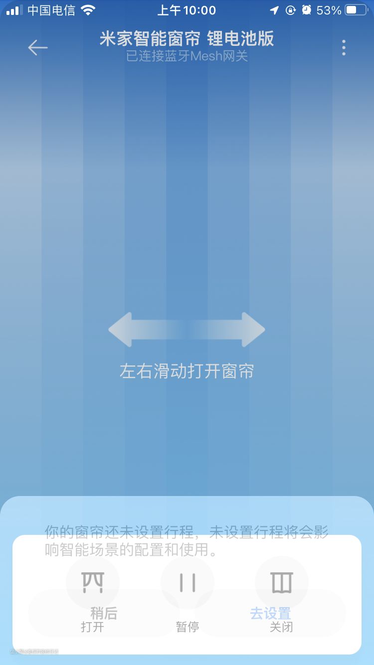 初次使用需要连接米家APP,虽然米家智能窗帘提供APP和语音操控方式,但是配备遥控器,多少有点遗憾,希望后面能增加遥控器选择。