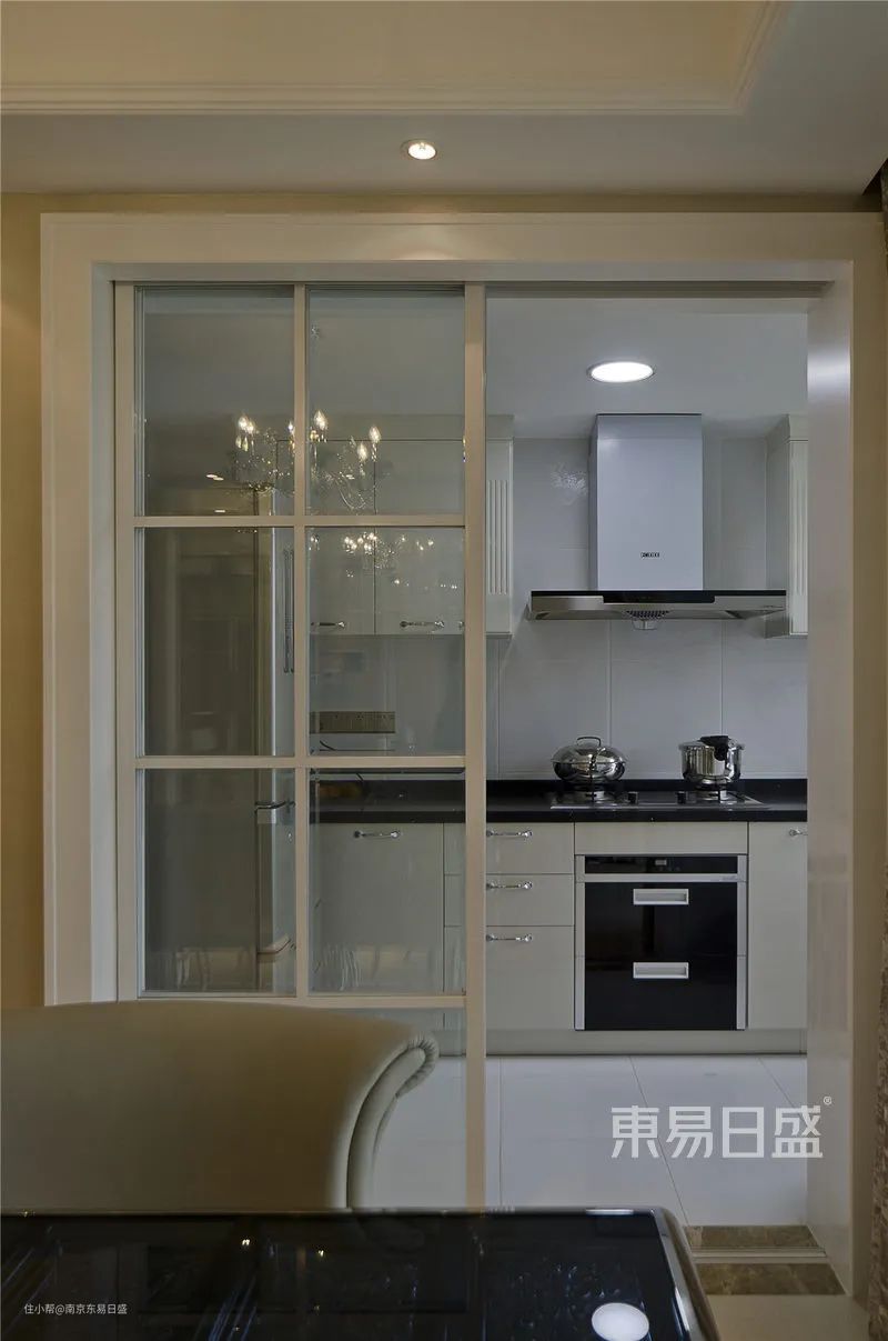 家里若是养了宠物,担心宠物会去厨房捣乱的话,那么也是建议大家给开放式厨房加个移门。