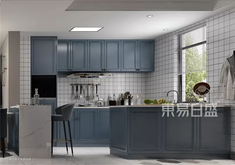 ▲厨房墙壁可铺贴浅色瓷砖,以营造清新自然的视觉感受