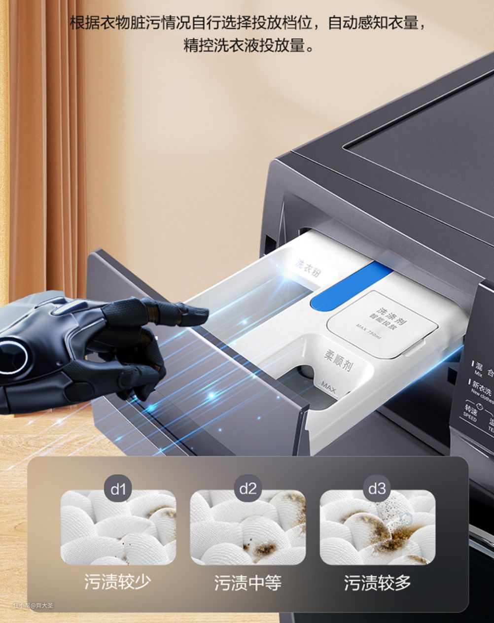 装载感应技术,自动生成洗护程序,避免过度洗涤。