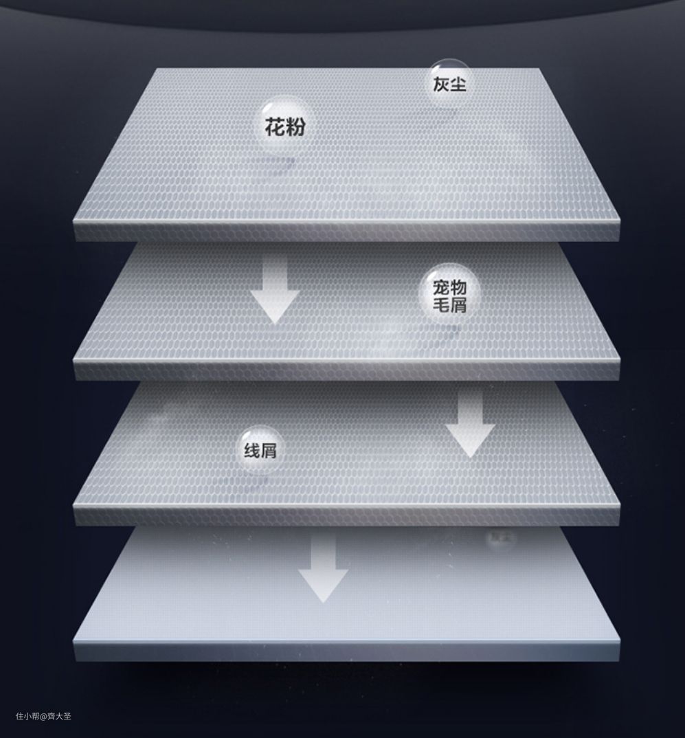 ⑦四重线屑过滤,除菌率99.99%,除螨率100%