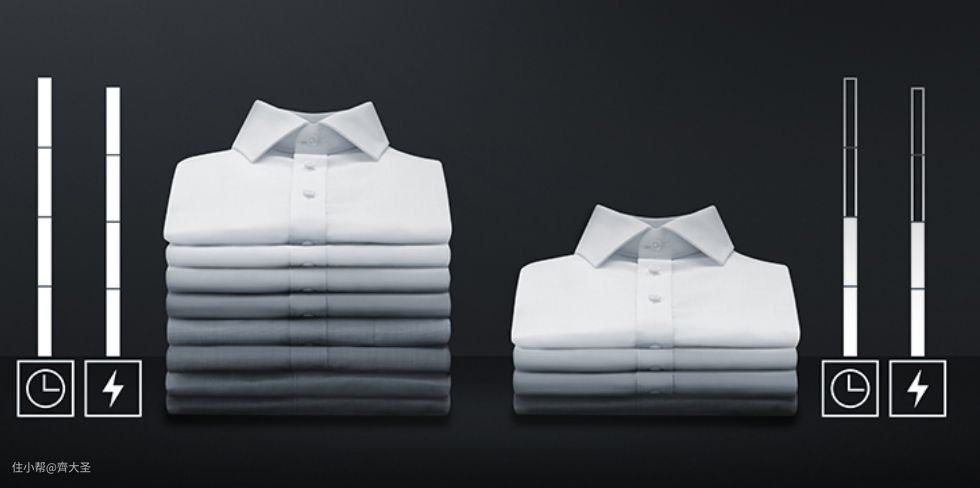 相比普通烘干机的56℃烘干,可以做到42℃低温烘干,护型护色不伤衣。
