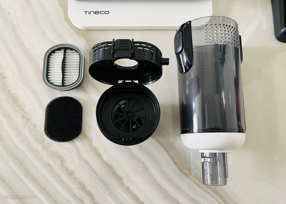 ▼接下来来看一看这次添可新带来的吸尘器。前端的一个腔体,通过快拆结构和主机相连,同时集成了尘盒。
