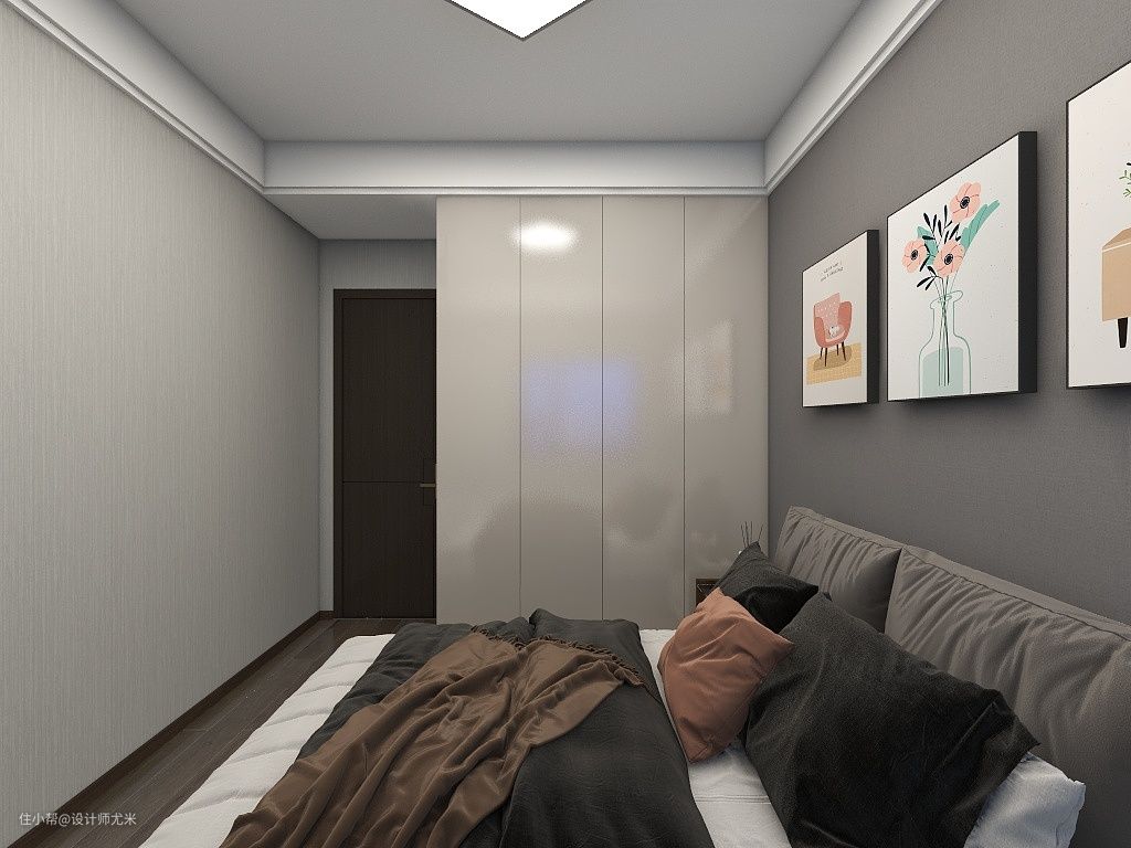 天花没有做全吊顶,只是用石膏板做了一圈双眼皮。这样既节约了整个施工的造价,也提升了主卧的颜值。