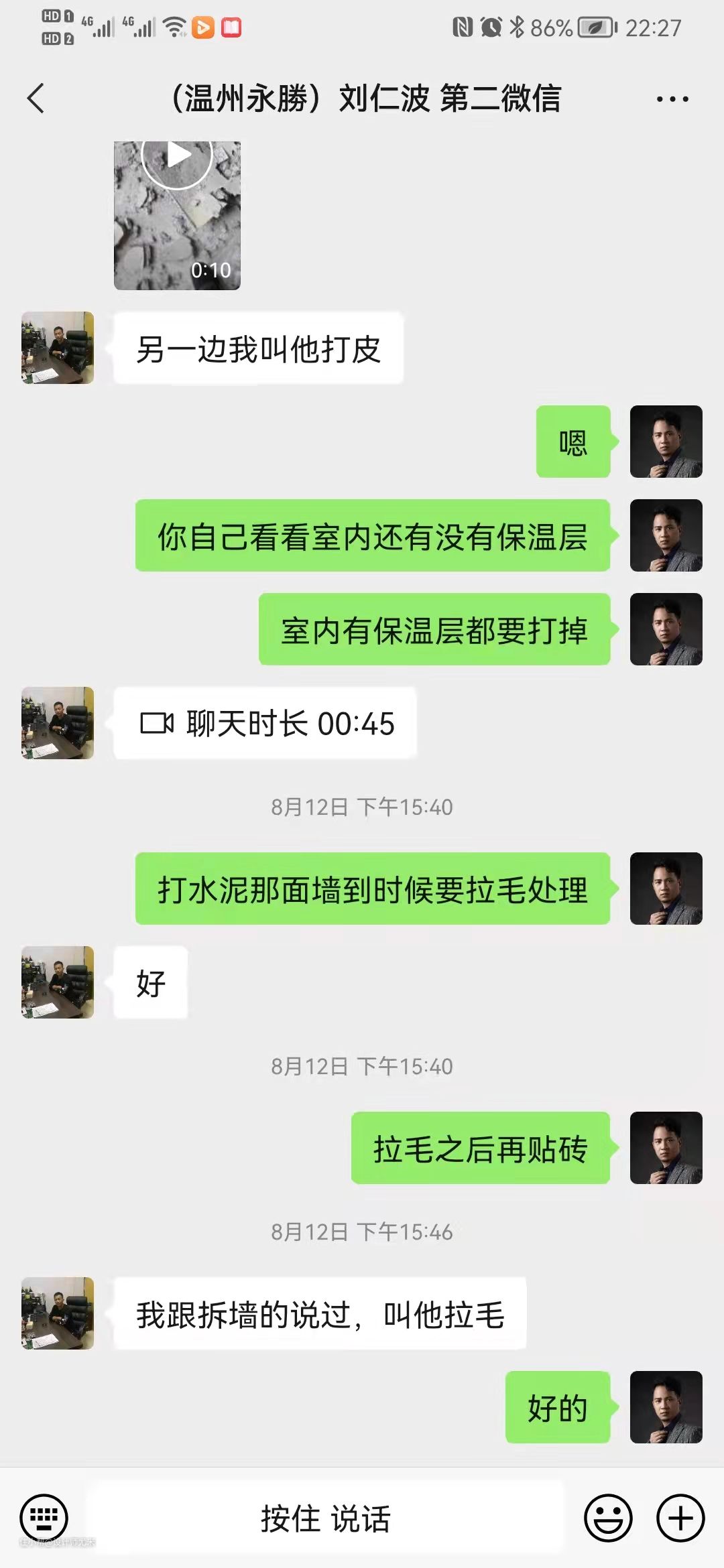 这是施工过程的一些沟通记录,后面还有很多,整个过程手把手的教施工工艺,基本上刘总装完这套房子之后,自己就可以干装修了,haha!