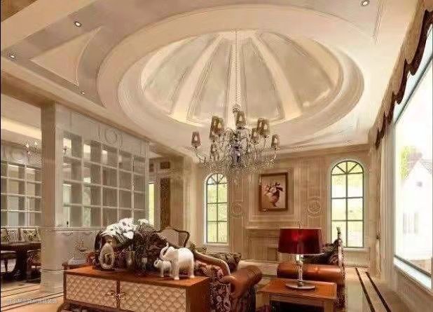 又成称拱形或盖形吊顶,这种吊顶施工要求非常高,及其考验施工师傅的手艺,造价也不便宜。而且只适合层特别高或者是尖屋顶的房子。