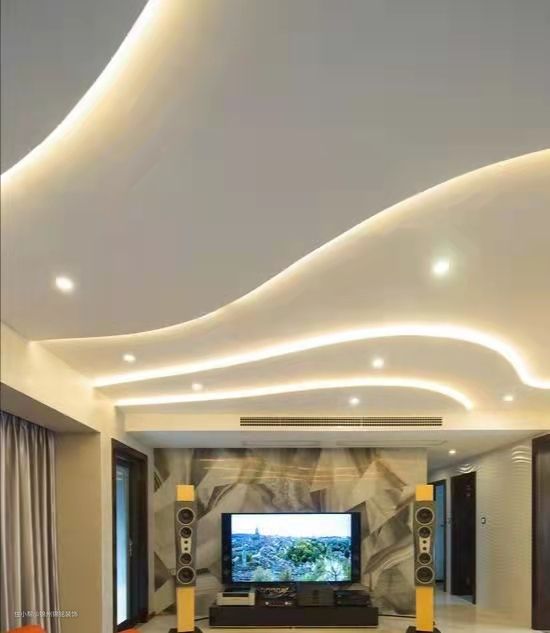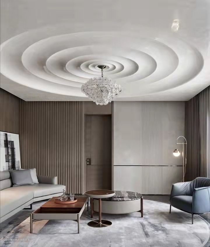 能做出不规则形状的吊顶对层高没有太大要求,大于2.6米的都毫无压力。这种吊顶比较个性,能选择不同的图形,适合异形的房间。如果方正的房间采用异形吊顶,能很好的增强空间灵动感。造价会比普通吊顶贵一些,施工起来也更麻烦。
