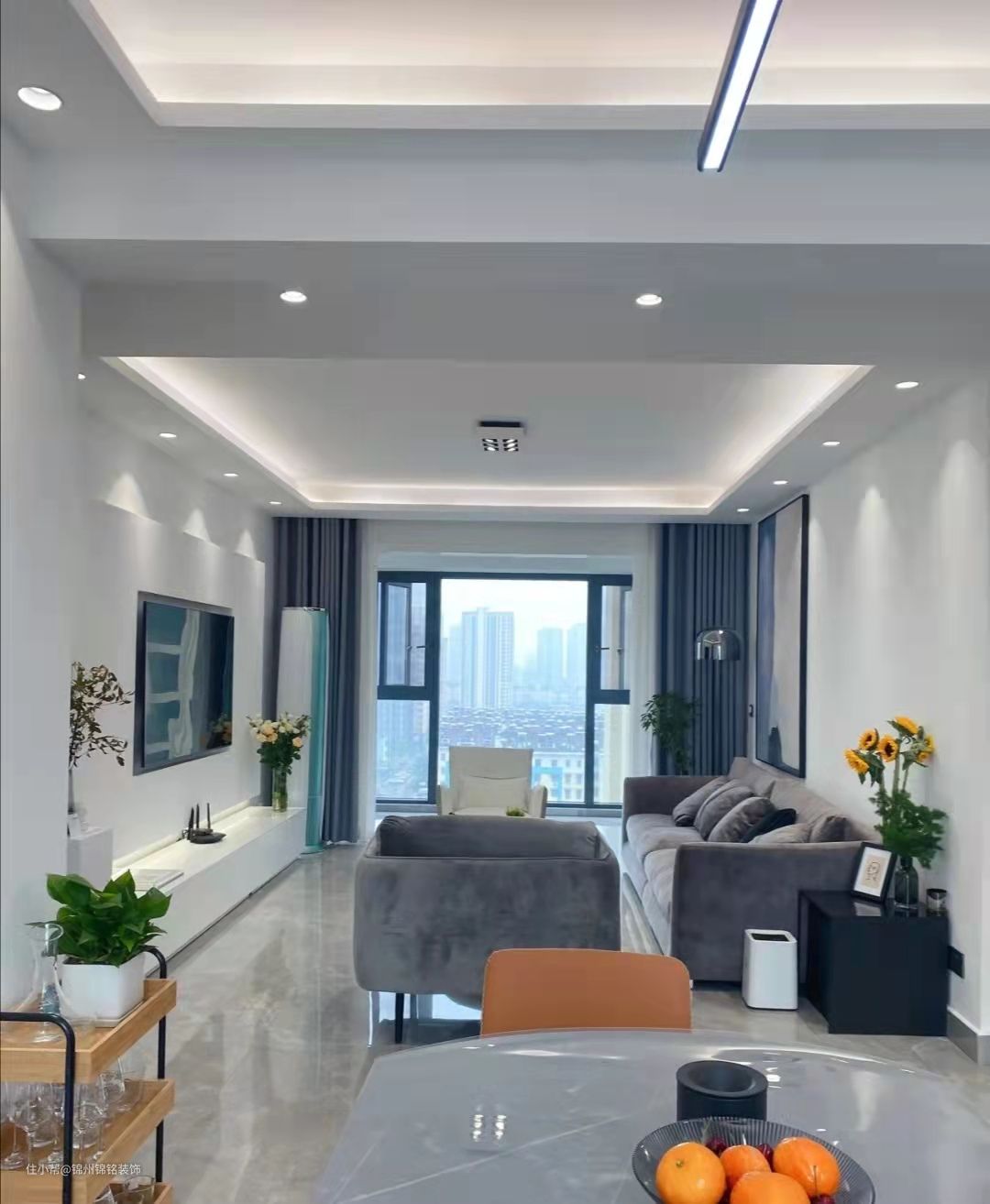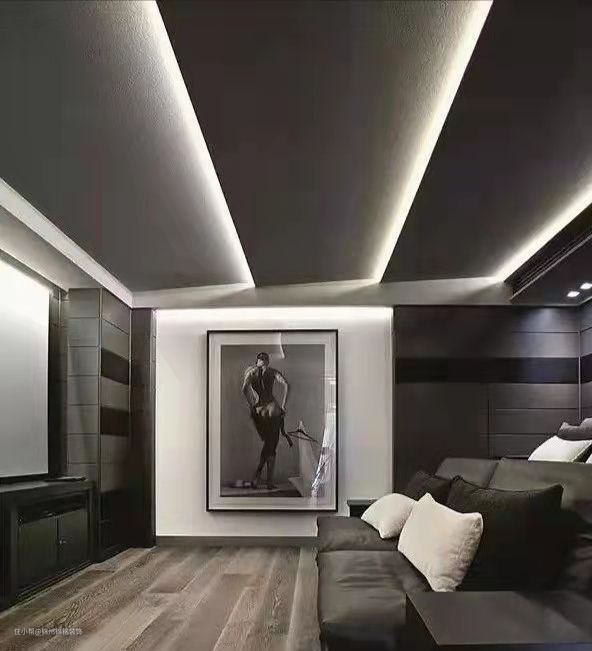 这种大平顶需要全屋吊顶,做出来给人的感觉就是没有吊顶,常与无主灯设计搭配。视觉效果极简清爽,让整个房间更显宽敞明亮。这种吊顶非常考验层高,一般需要至少下吊十公分。才能把灯本身藏住,达到见光不见灯的效果。