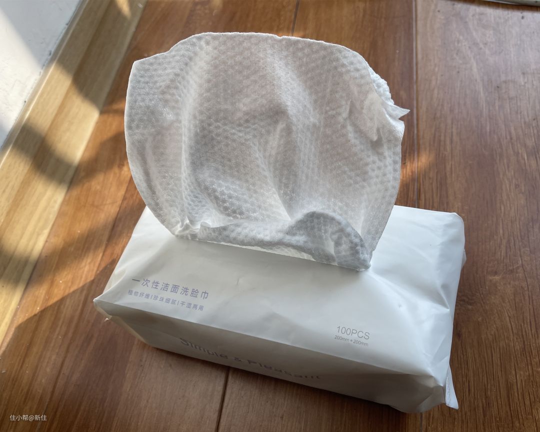 - 水刺无纺布:触感更细腻,而且紧实有韧性,比全棉更不容易破,单张洗脸巾用2-3天不成问题。