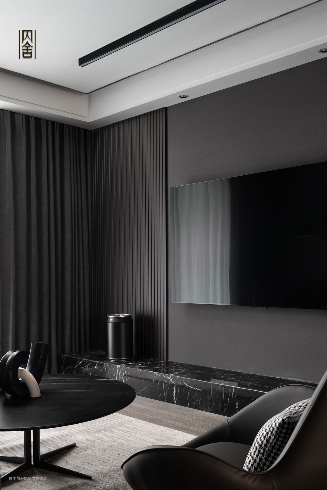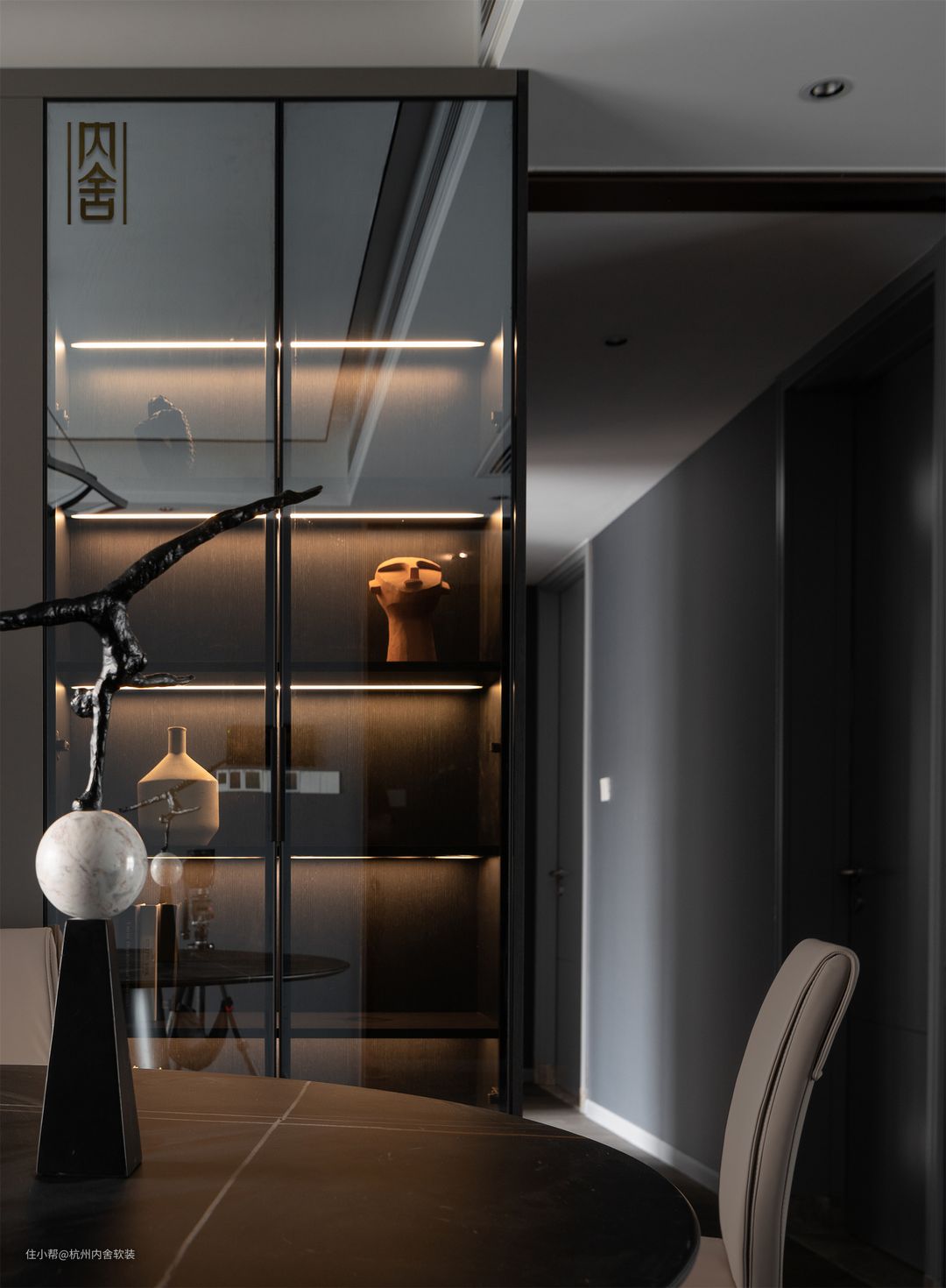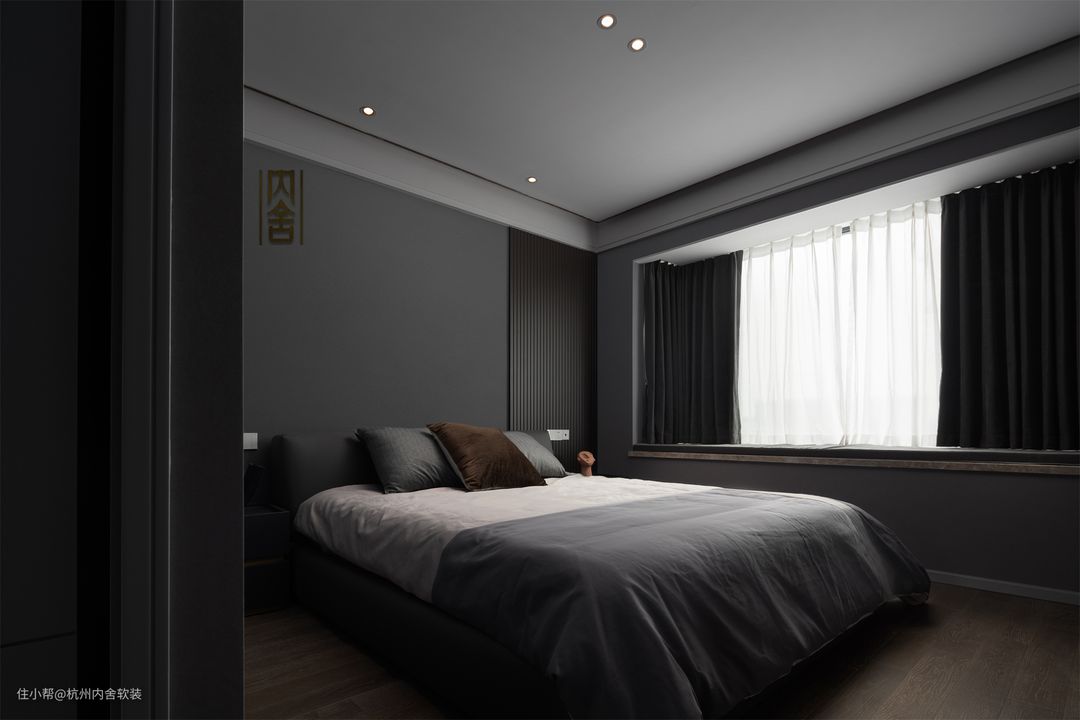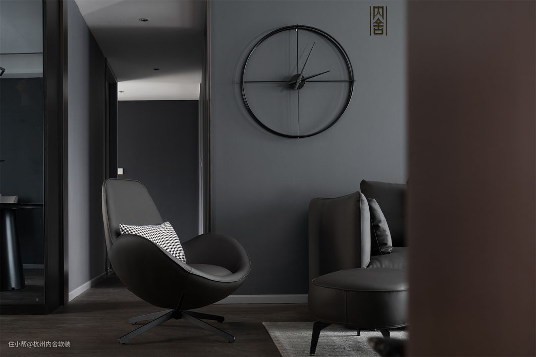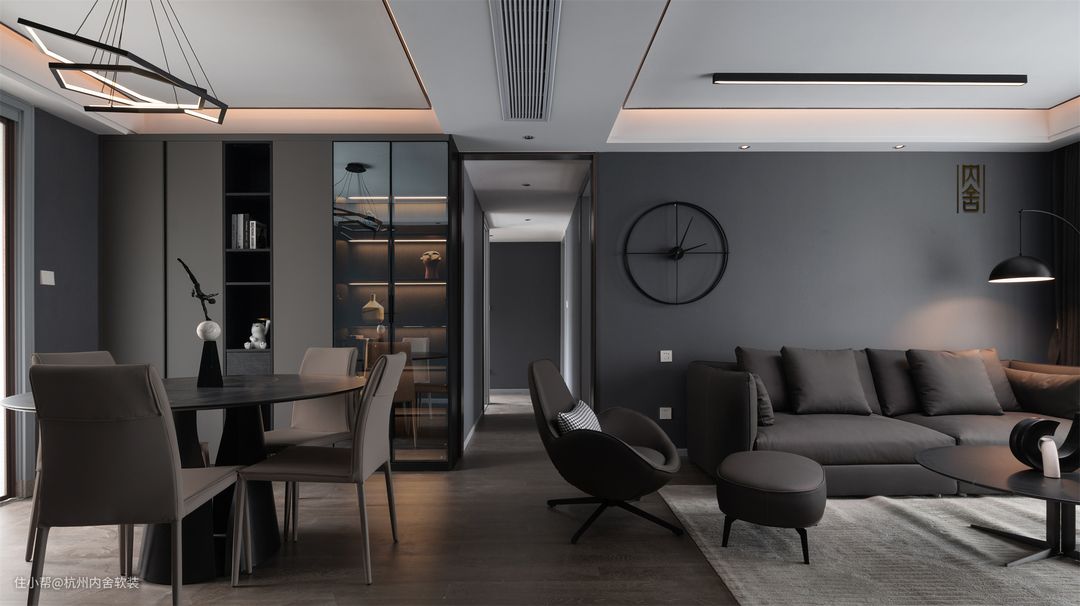 虽是大面积黑灰色调设计,但不同材质、不同线条的变化和层次,简约的装饰物剔去沉重感,彰显黑灰的不同层次与质感。