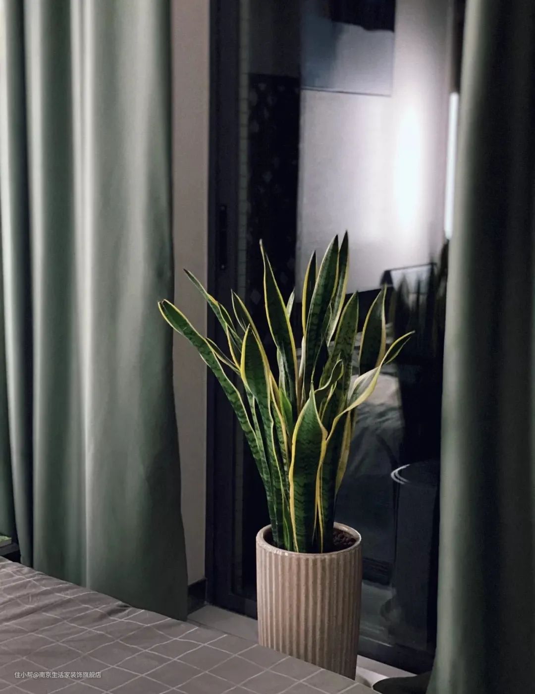 卧室的绿植摆放则需要与其安静、平和的氛围相匹配,颜色不应过于花哨,以淡雅清新为主,还有一切可净化空气、吸收有毒气体的植物。