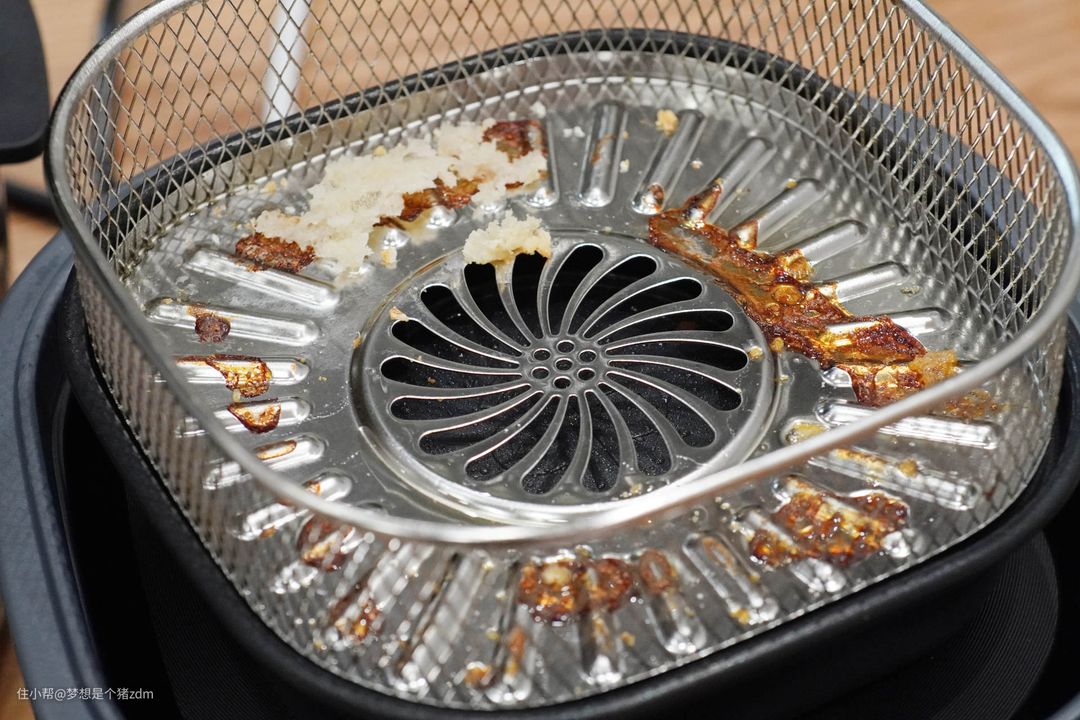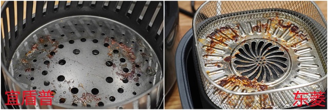 不但食材容易被粘在加热篮上,清洗的时候更是苦不堪言,这些油渍在加热过程中会被烤干,然后牢牢的粘附在加热篮上,即便是浸泡大半天时间,依然是很难清洗干净。
