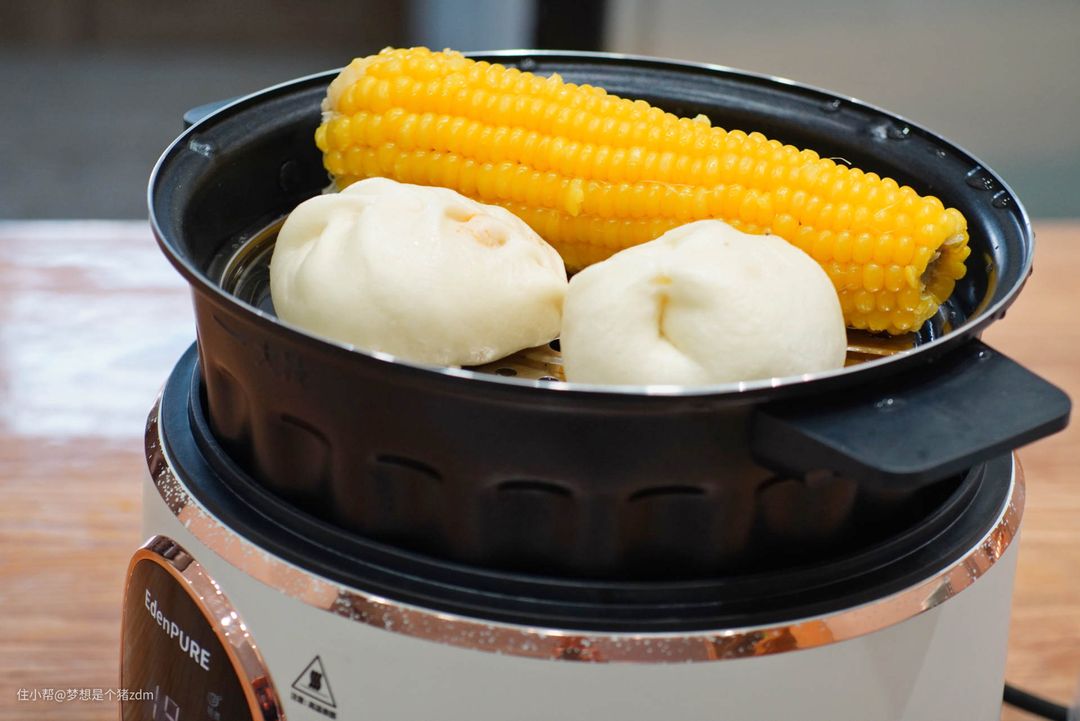 宜盾普可以搭配煎盘、火锅盘和蒸架,实现更多的功能,这是九阳这种顶部加热的空气炸锅无法实现的。