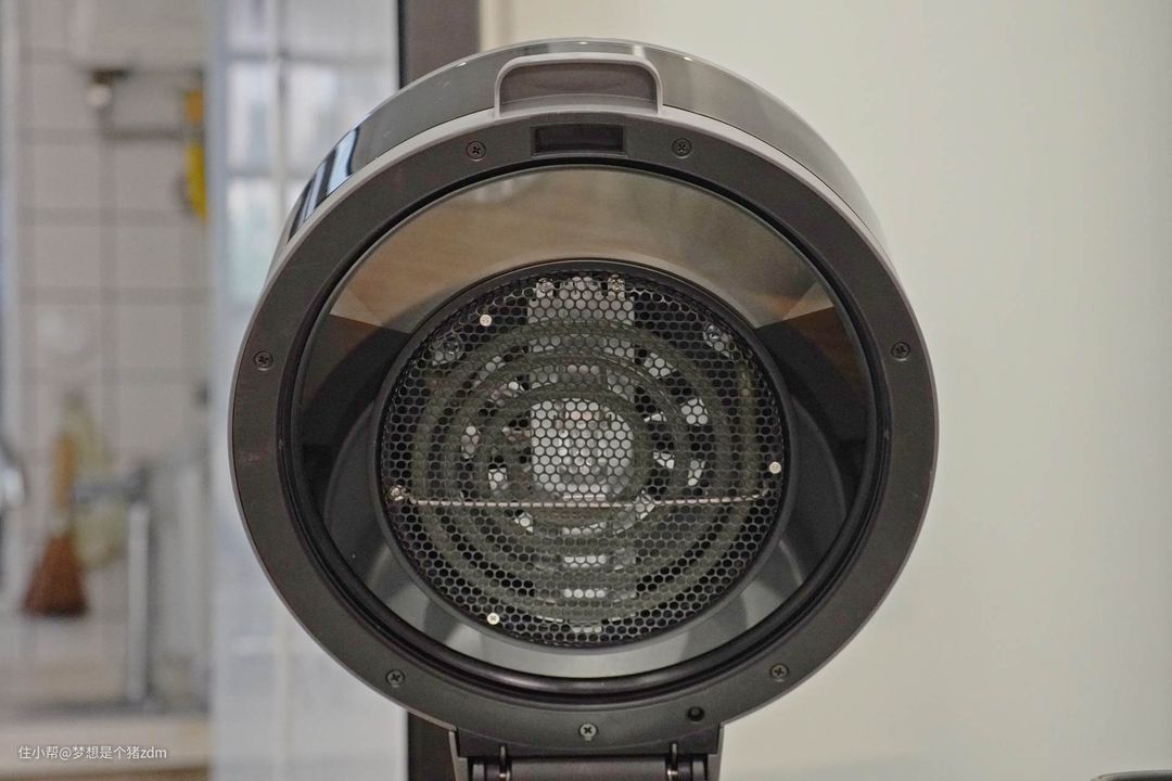 九阳的加热管设计在顶盖内,风扇从上往下吹出热风,热风穿过食物上方,再从加热篮底部进行反射,然后加热食物底部。