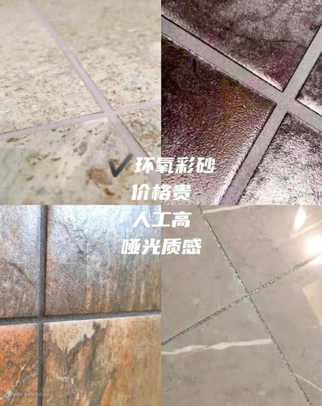 ▶️环氧彩砂:视觉上,没有勾勾缝剂那么粗糙,和美缝剂一样颜色多,哑光质感。