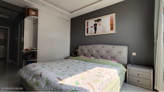 “家里每个地方都有它的独特作用,我的卧室,希望能够让我每晚安安稳稳睡上一觉就好。”整个卧室以灰白为主色调,沉稳的色系营造出舒适的睡眠氛围。