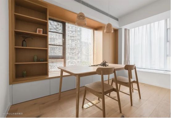 位于书房、餐厅或者客厅区域的飘窗,都可以直接利用台面打造成卡座,搭配着书桌或者案几,便可以满足阅读办公、用餐、做手工等各种生活需求,功能多样且实用,而且还可以节省不少空间。