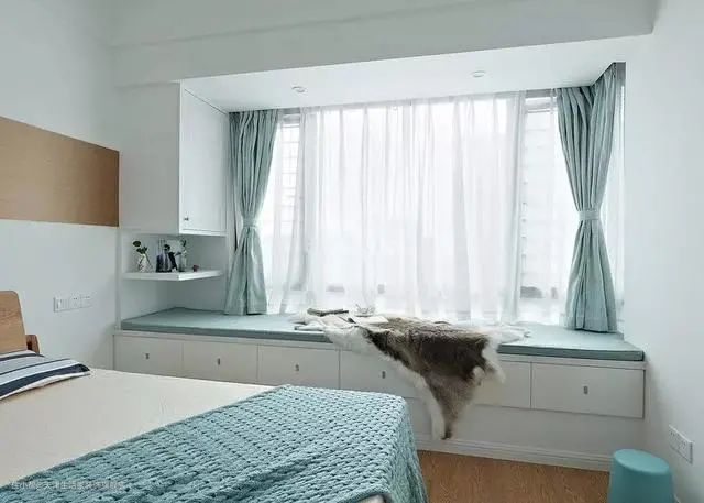 『搭配抽屉』有人想把飘窗做成储物柜,奈何不能砸,其实可以直接在上面加一层抽屉,当然这个要看原来的高度。不做抽屉,做成格子当书柜也挺好的,或者搭配一些收纳盒。