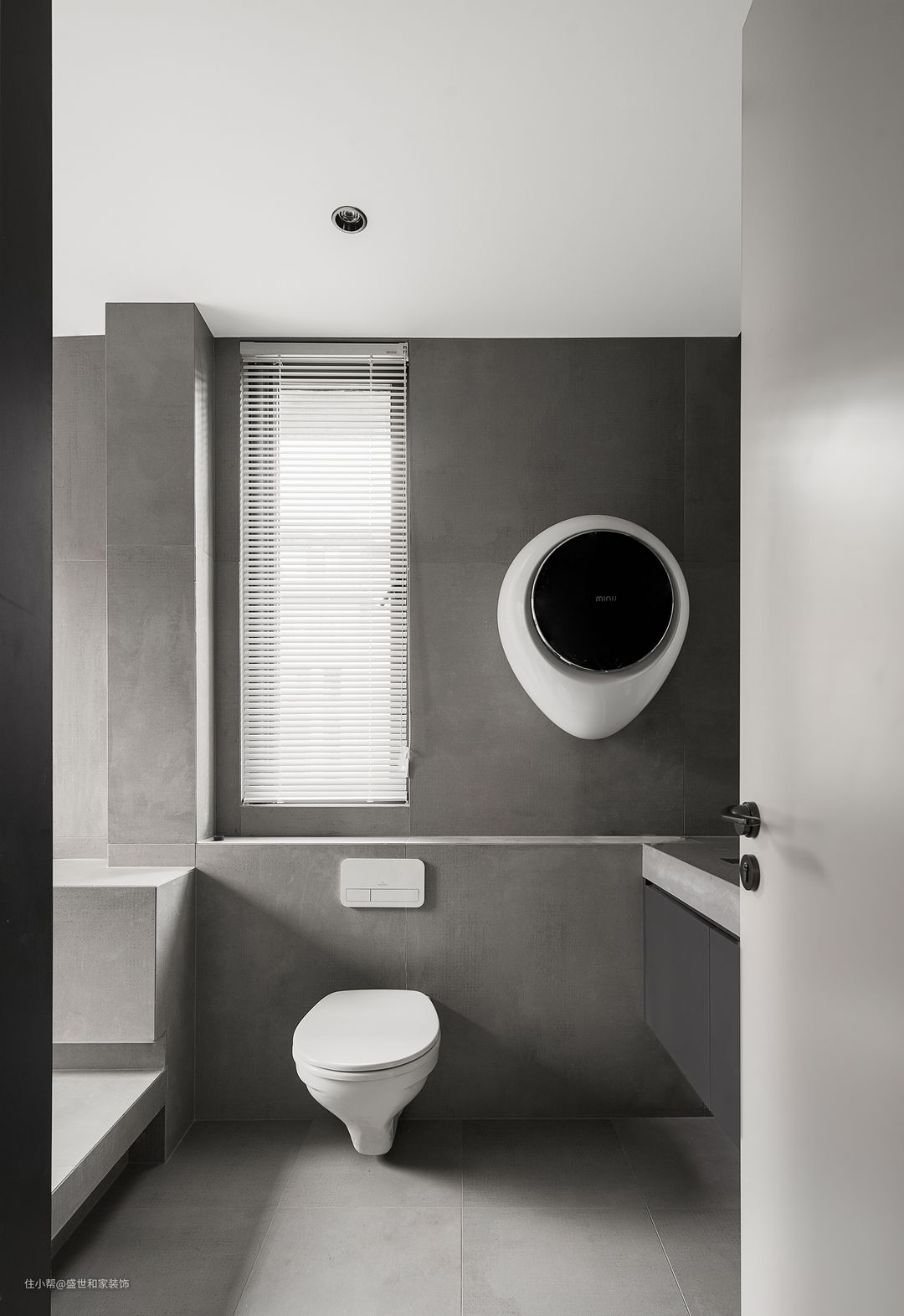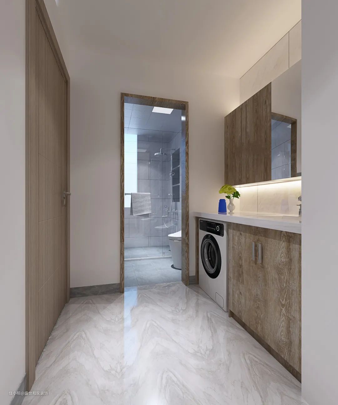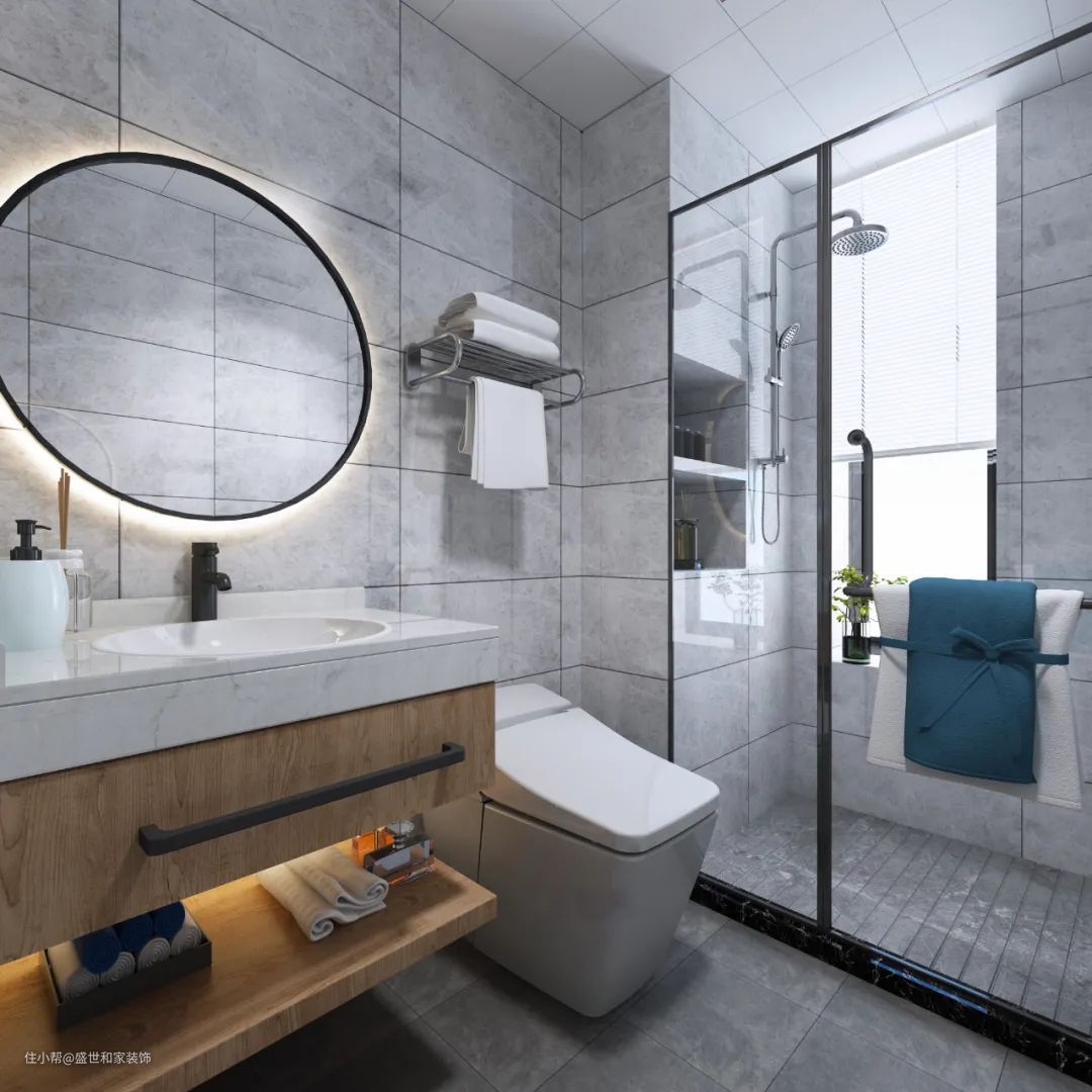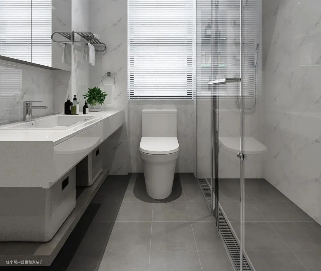 卫生间太小,又想要实现比较合理又舒适的功能设计,如果条件允许的话,也可以考虑通过户型改造的设计,把卫生间的面积稍微扩大一点点,比如把洗手盆外置过道区域,以便让卫浴面积更加宽敞舒适。