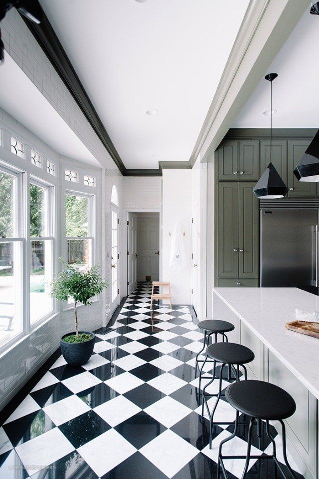 虽然注意的是,这种大面积铺设的棋盘格,户型光线要好,面积要够宽敞,风格要够极简才行。