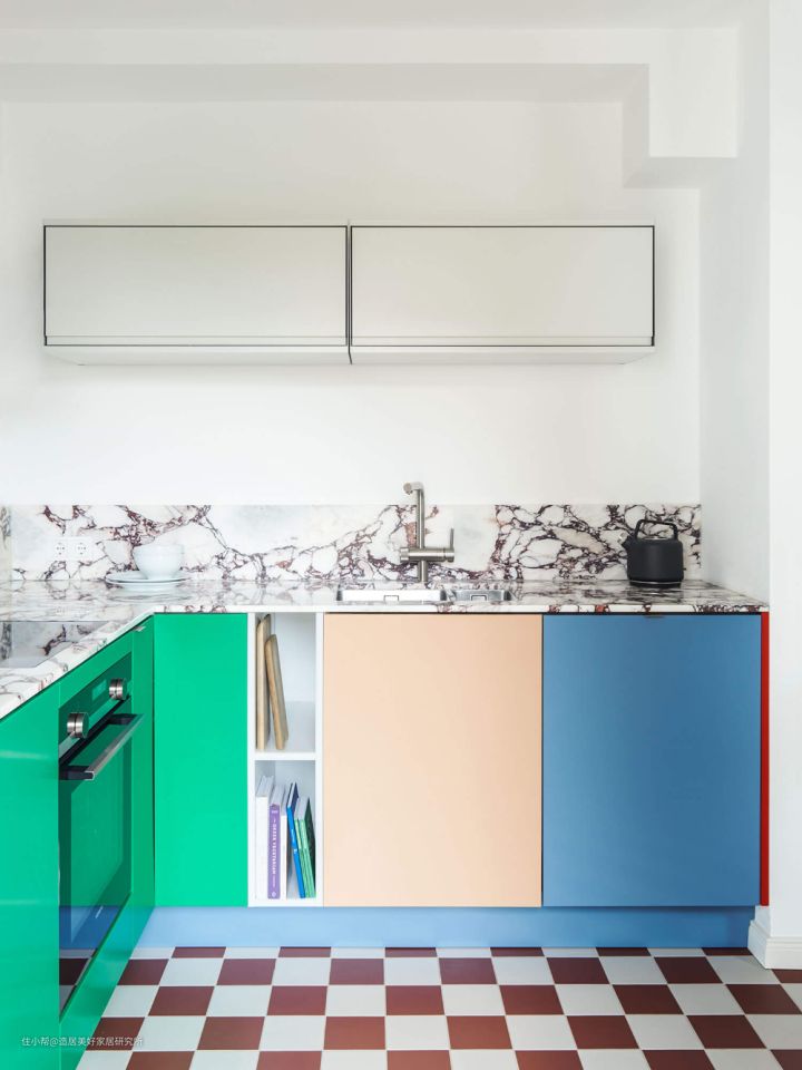 还有厨房防溅板区域和马桶区域,都可以重点少量的用棋盘格装饰,视觉效果会比较显著。