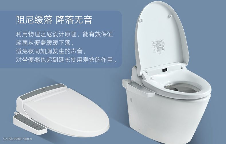 高仪的这款智能坐便盖除了能和壁挂马桶配套使用外,同样也可以用在高仪的坐地式马桶上,因为利用了物理阻尼设计原理,在使用时,座圈从便盖缓缓下落,这样的设计,可以避免我们在晚上如厕的时候发出响声,影响到家人休息,而且对坐便器也能起到保护和延长使用寿命的作用。