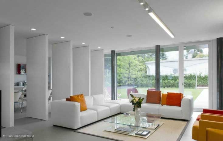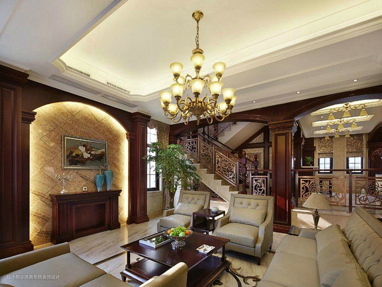 (3)适用于大面积的空间。欧式风格的敞开式客厅,大部分处在挑空结构之下,大面积的玻璃窗带来了良好的采光,落地的窗帘很是气派。所以欧式风格一般只适用于120平以上的户型。