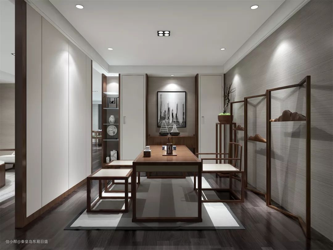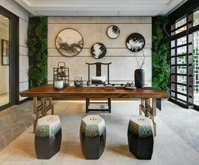 茶室空间可以是大白墙搭配线条挂画,可以是贴上暖黄色的墙纸凸显温馨感。