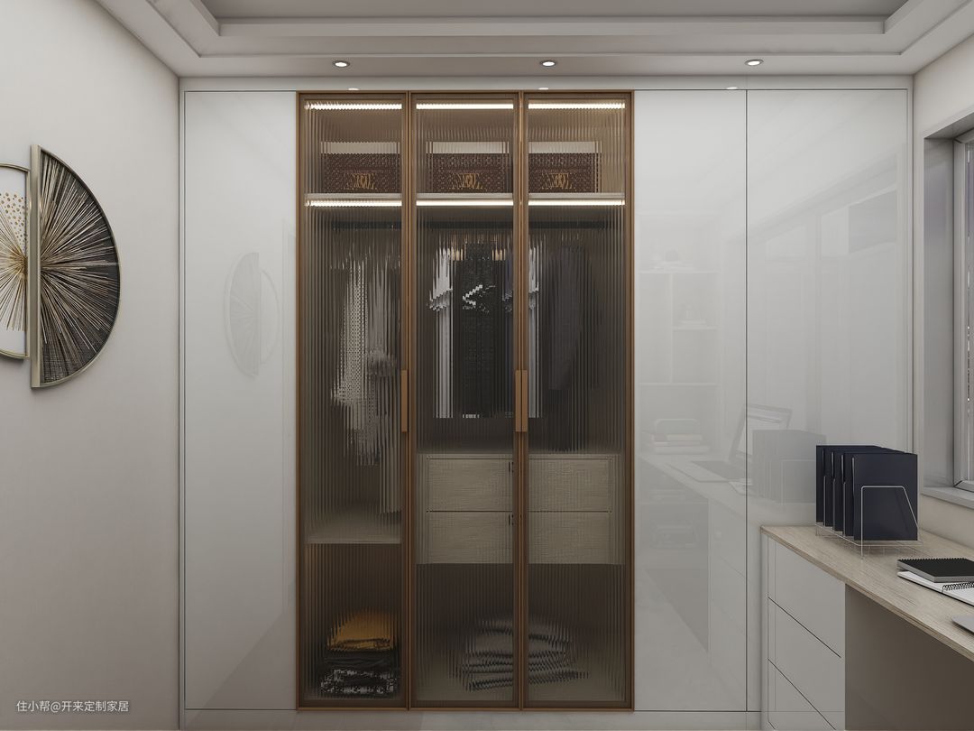开来定制家居|全屋设计|客餐厅|卧室|青少年房|书房兼衣帽间|玄关|金色窄边长虹玻璃门