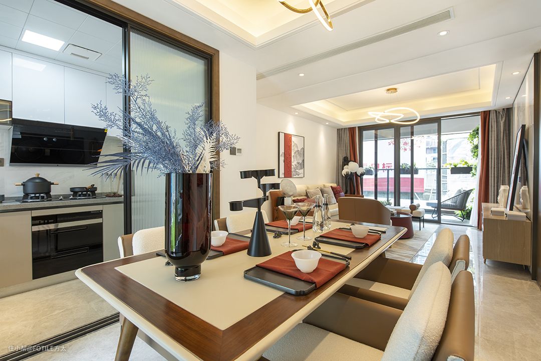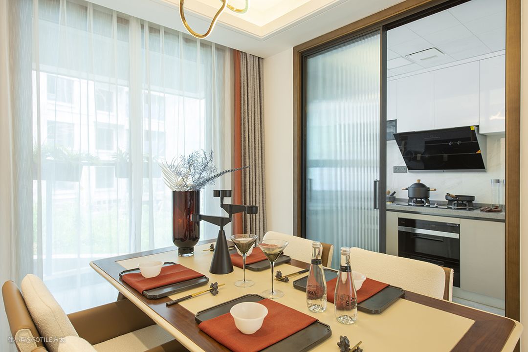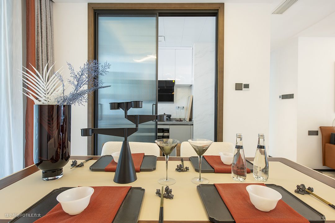 而餐厨之间的长虹玻璃门,将光线折射,也让空间多了一层若隐若现的质感。