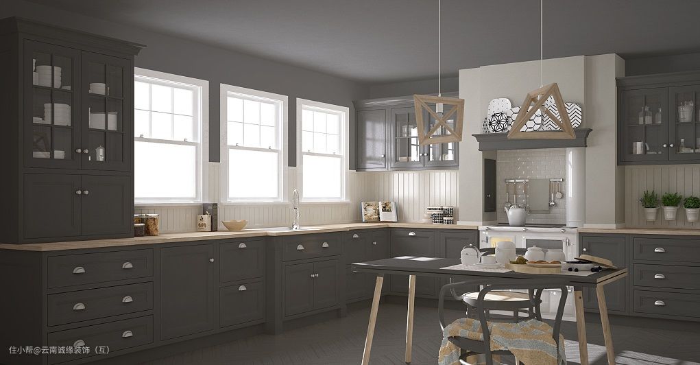 美式风格也是一种比较高档优雅的,厨房橱柜门板喜好用实木门扇或是白色模压门扇仿木纹色。