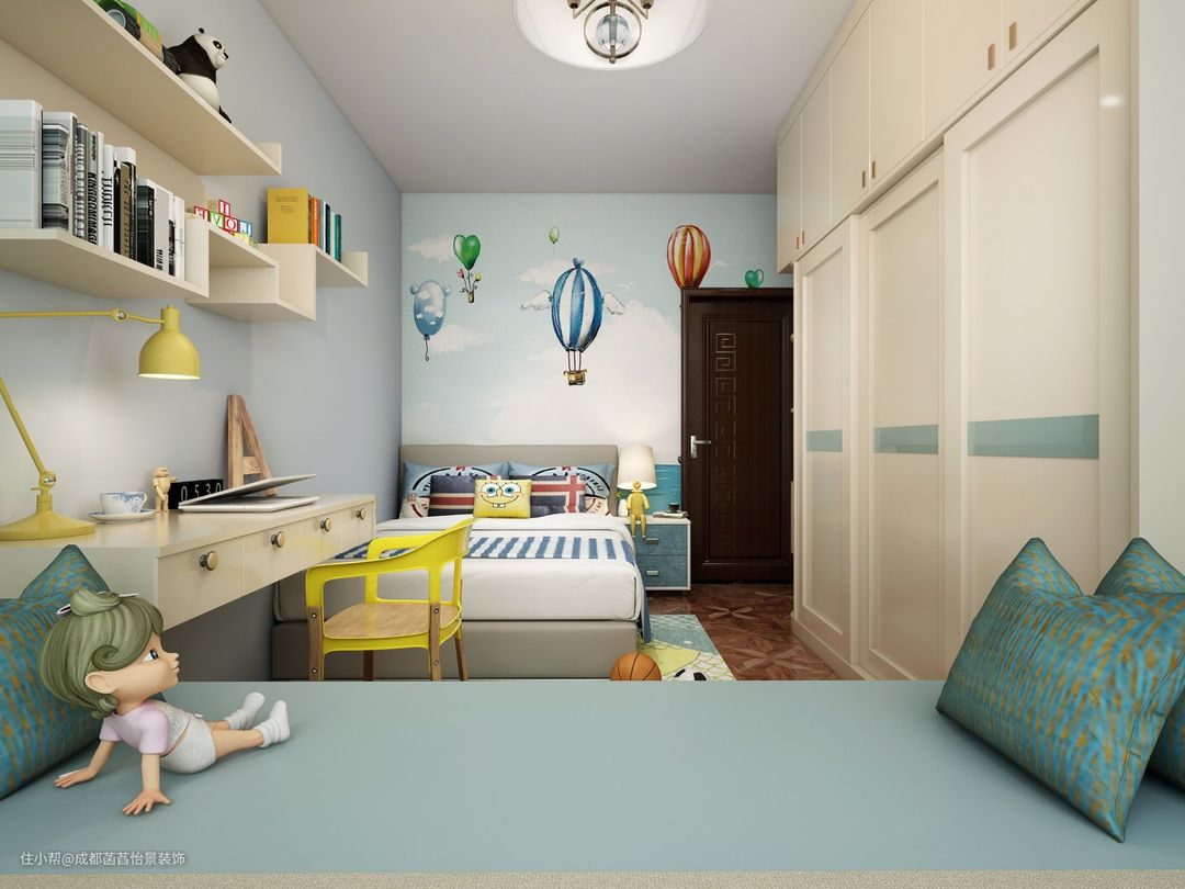 儿童房的设计,简单舒适,清爽的蓝色调与奶白色相搭配,童真的装饰与布置,给予孩子一个舒适的成长空间。