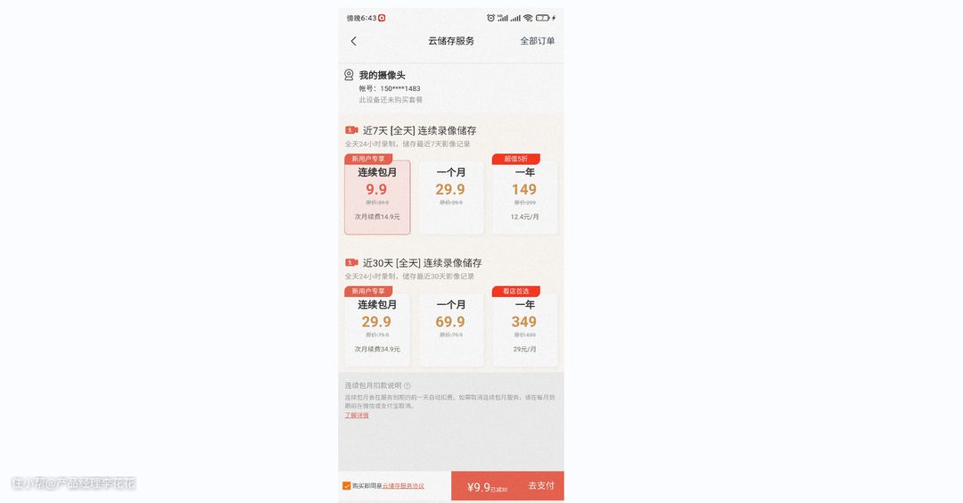 - 支持云存储。这款设备可以最大支持128G的TF卡,把卡插上去,就会自动录像,卡录满后,会自动循环把老的录像覆盖掉。同时可支持云存储,云存储的意思是视频内容会上传到云端的服务器,哪怕你的设备被偷了,断电了,云端服务器里面的视频内容还是会在的。开通云存储需要在手机上开通,需要收费。