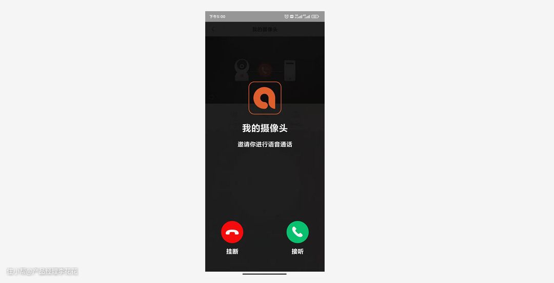 - 一键语音通话。摄像头正面有个电话的按钮标志,当有人触摸时(需要长按2秒才能开始拨通,这样做估计是为了防止不想打电话却又不小心碰到设备语音键的场景),手机APP扫码绑定过这个摄像头的主人就能收到语音通话提醒,主人只需点击接听后就可以接听通话。家里如果有老人和小孩,当他们需要和子女或父母语音通话时,这样操作就很方便。