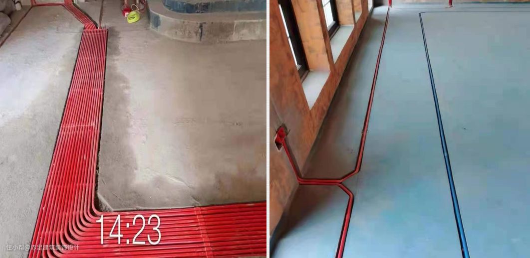 采用横平竖直的敷设工艺,施工规范,杜绝重复走管。强弱电线管分色铺设,能通过线管颜色直接判断出电源性质。