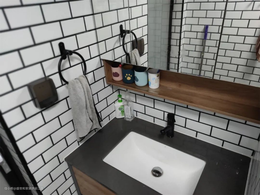 而其他牙膏牙刷与水杯,则是可以在洗手盆上方安装一个镜柜,这样既有镜子方便洗漱,又有实用的收纳位置,实用功能加倍。