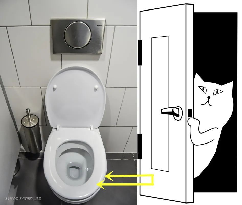 一些面积太小的卫生间,在马桶与卫生间门的处理上,也是一个棘手的问题,由于卫生间内部面积小,普通平开门在开门的时候,卫生间门就容易与马桶碰到一起,所以就有大家网上看到的翻车设计——马桶顶住卫生间门。