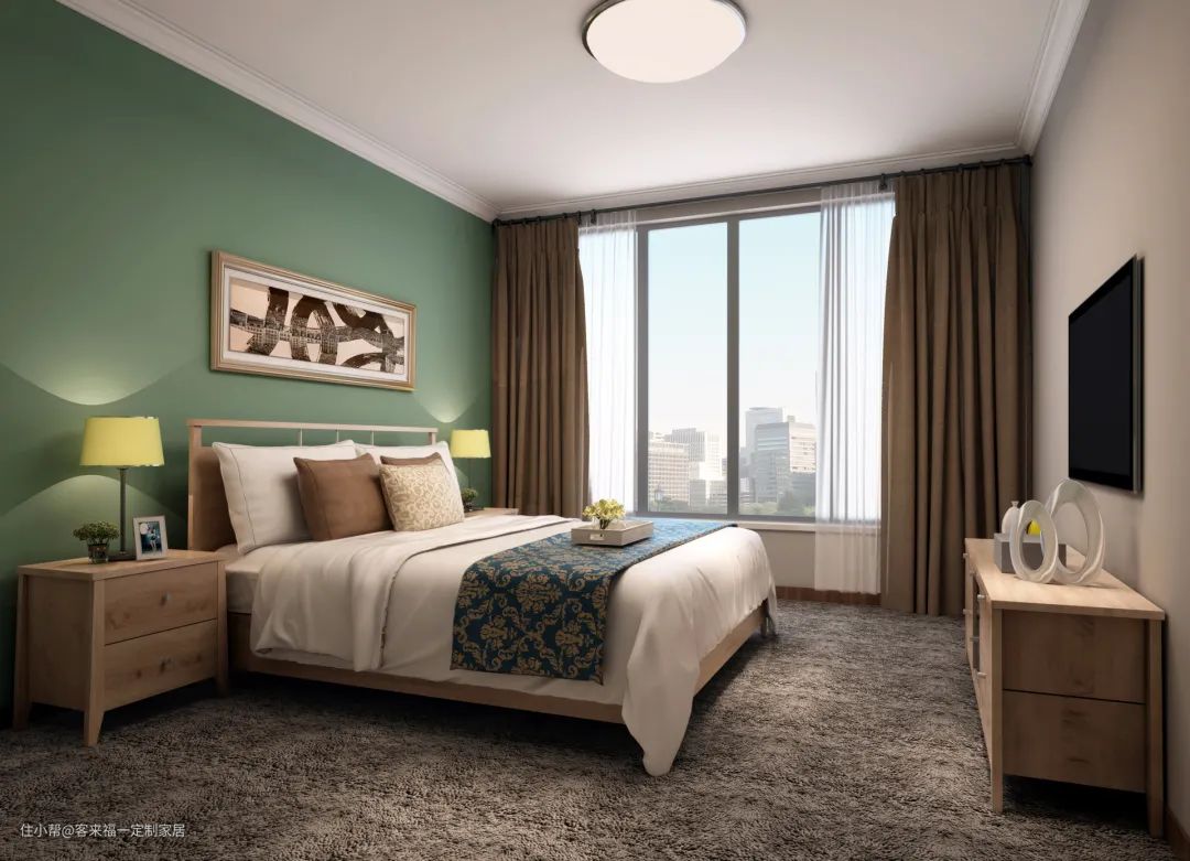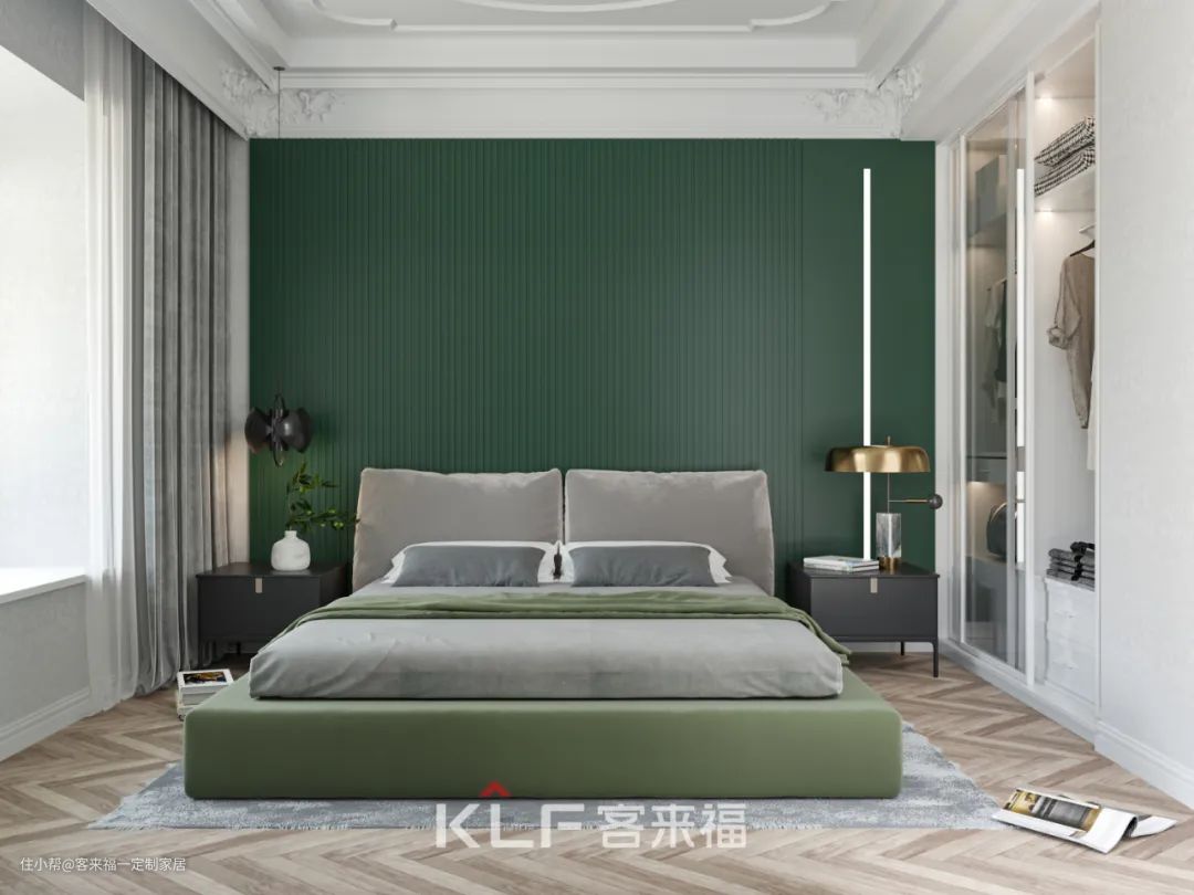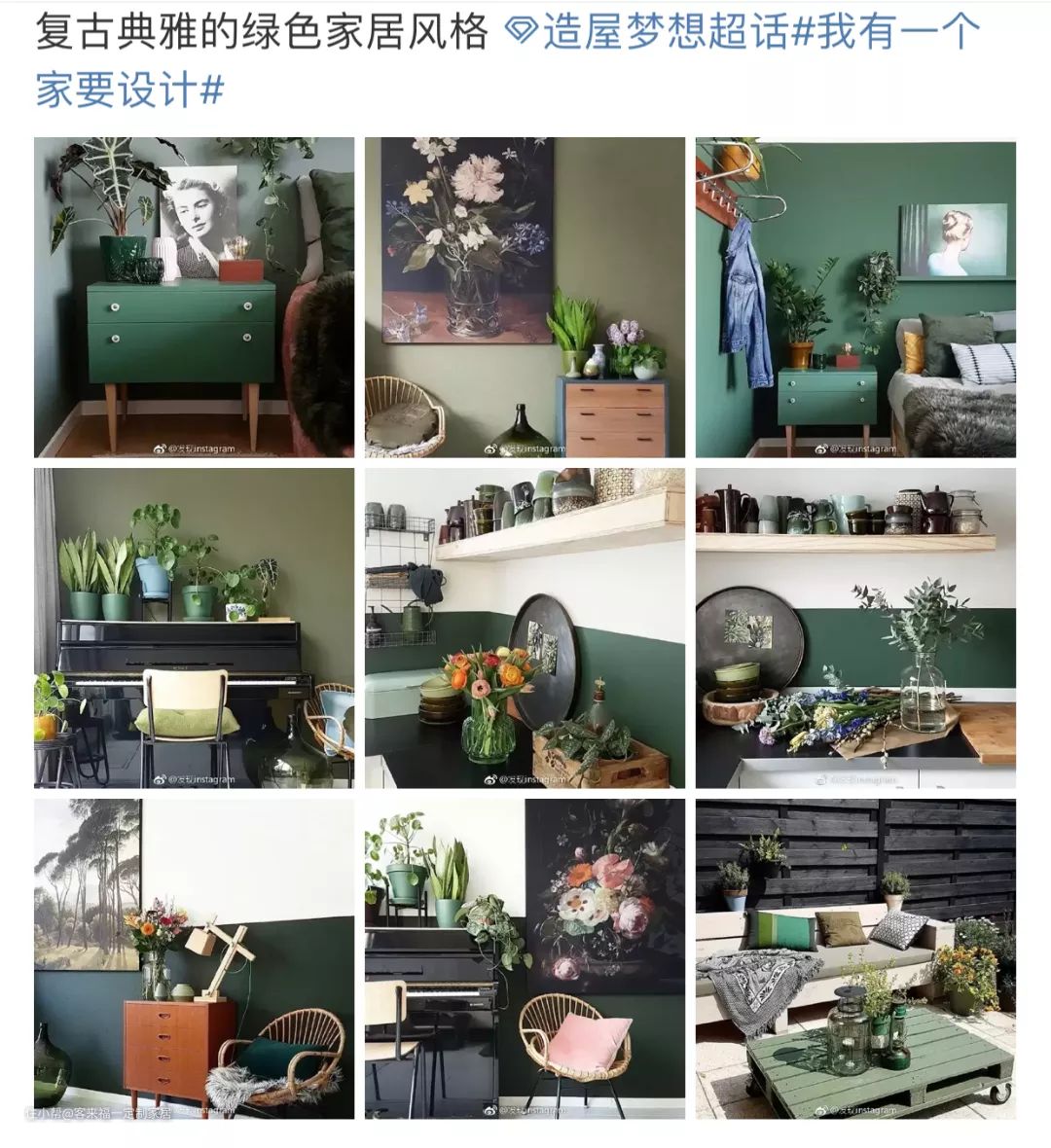 在微博话题中#我有一个家要设计#关于复古家的设计获得很多朋友的喜爱。无论是绿色的墙面还是橄榄绿色的床头柜,都深得用户们的认可!