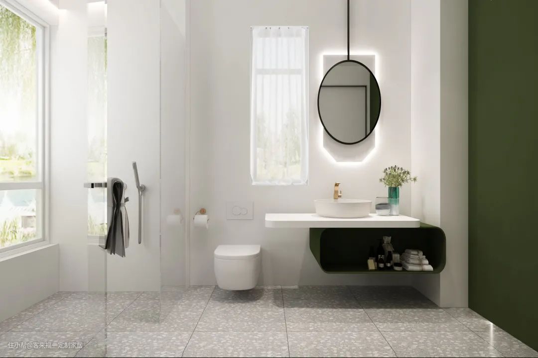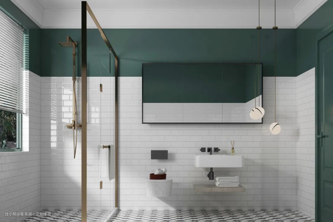 复古绿和白色墙砖的搭配,为卫浴间带来时尚的潮流设计。