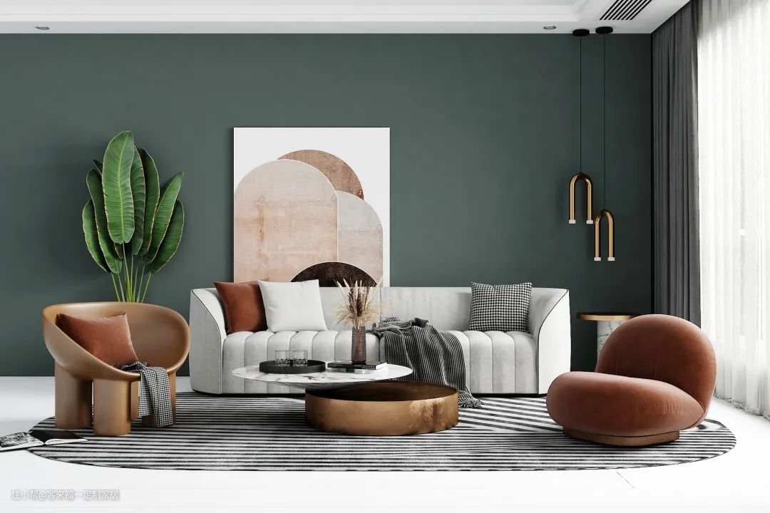 高大的龟背竹,富有层次感的挂画都给空间内增加了色彩感,使复古感更加浓郁。不同造型的座椅、茶几打破了客厅以往沉闷的家居摆设,整面复古绿的背景墙让家中客厅显得超乎想象的亮眼,客人来到家中都被客厅吸引,直呼太好看了!