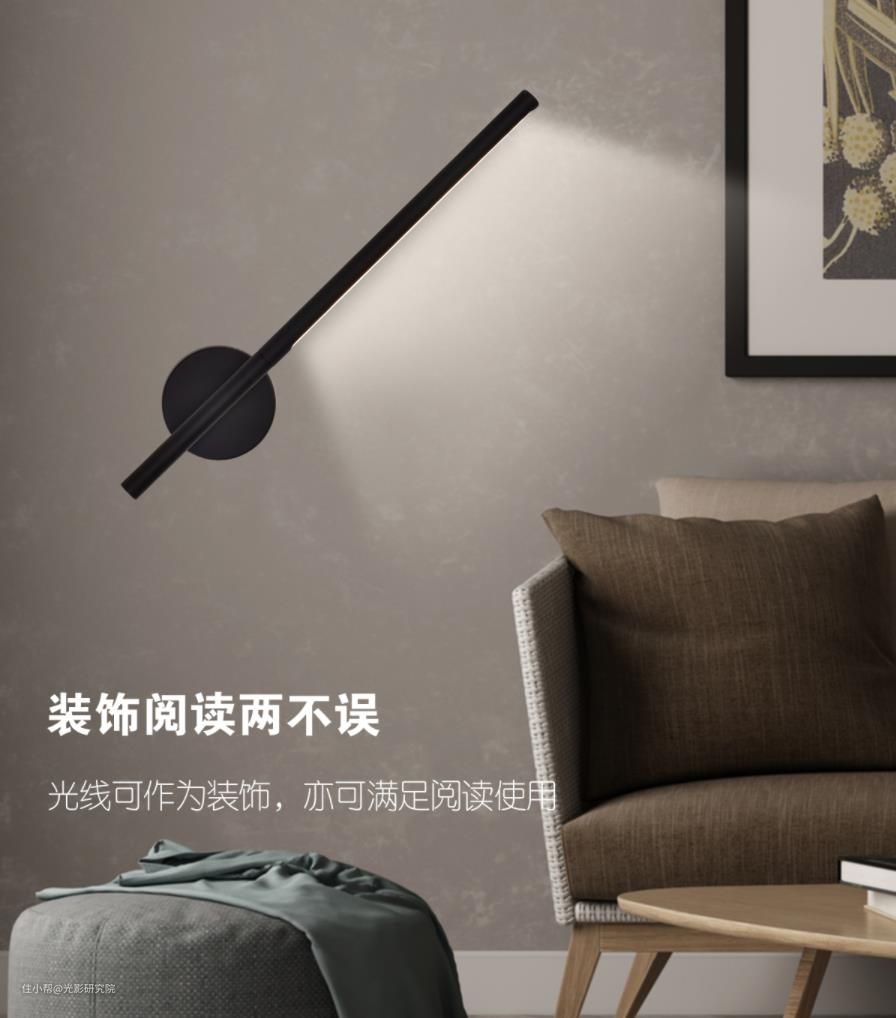 极简的造型安装在墙面,简约而高级。光线柔和而不刺眼,不论是作为床头装饰还是阅读使用都能胜任。