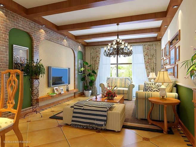 3、美式田园:又称为美式乡村风格,属于自然风格的一支,倡导“回归自然”,田园风格在美学上推崇自然、结合自然,在室内环境中力求表现悠闲、舒畅、自然的田园生活情趣,也常运用天然木、石、藤、竹等材质质朴的纹理。巧于设置室内绿化,创造自然、简朴、高雅的氛围。