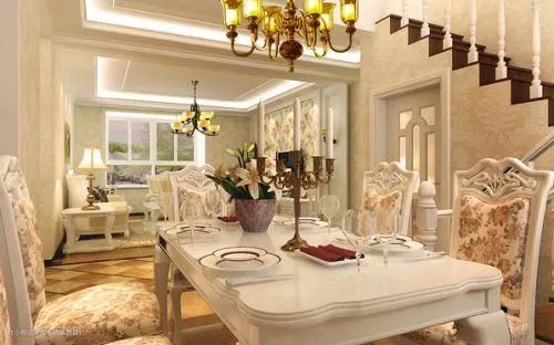 2、法式田园:主要在于家具的洗白处理及大胆的配色,以明媚的色彩设计方案为主要色调,家具的洗白处理能使家具呈现出古典美,而红、黄、蓝三色的配搭,则显露着土地肥沃的景象,而椅脚被简化的卷曲弧线及精美的纹饰也是法式优雅乡村生活的体现。
