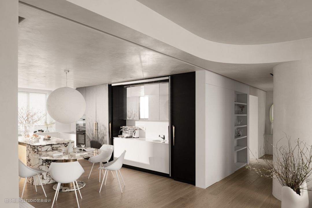 通过折叠门可以藏起来的水吧台,实现了收纳中的“藏”。