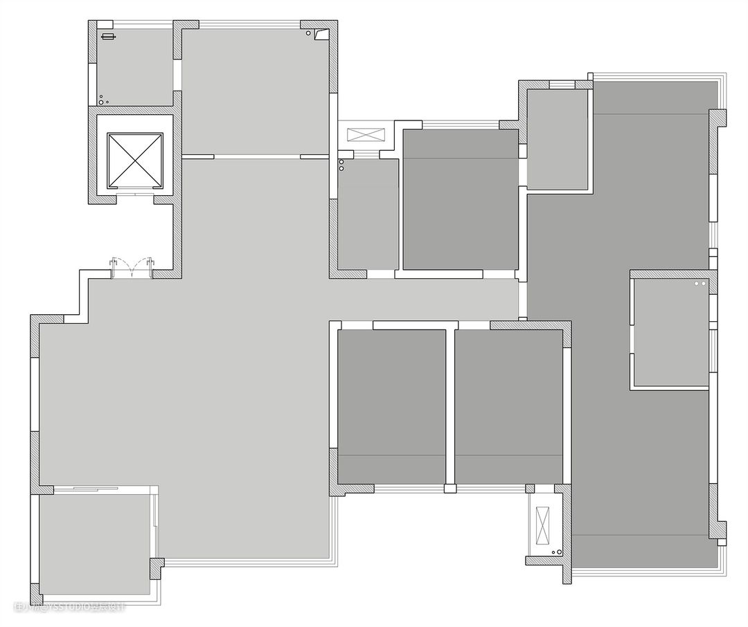 改动前:一共是五室,没有玄关,把空间切割得比较零碎。 这很不符合业主家只有两个人居住的实际情况。