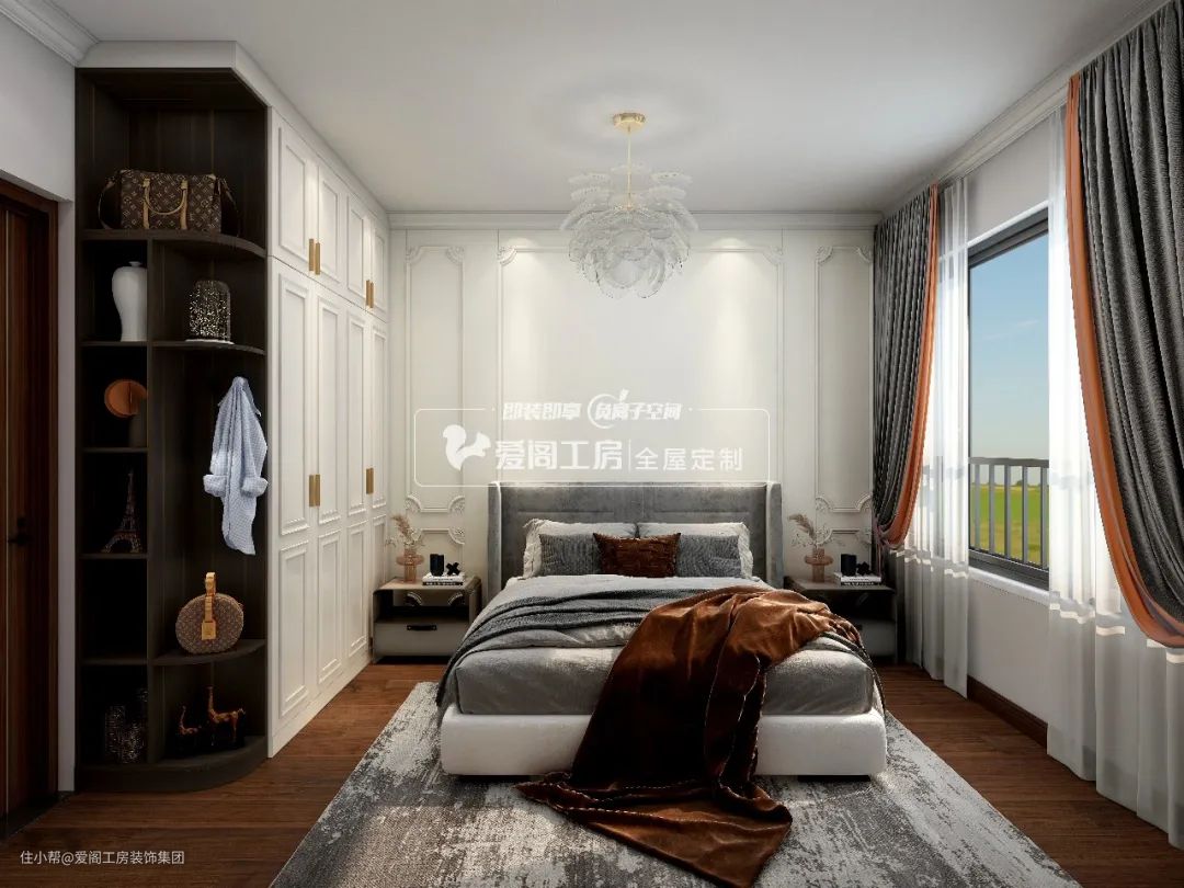 步入主卧,简约的法式情调,柔和的花朵吊灯,以及简约艺术飘窗,都带出了主卧空间的浪漫之美。设计师充分利用室外的光线,细节中尽显设计师的匠心美意,每一处都是满满的高级质感。