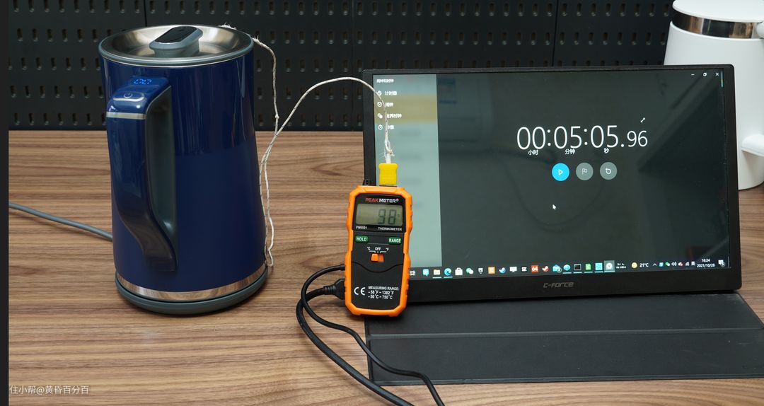 ▲经实测,将1.5L的水从20°C加热至100°C沸腾共耗时5分6秒。